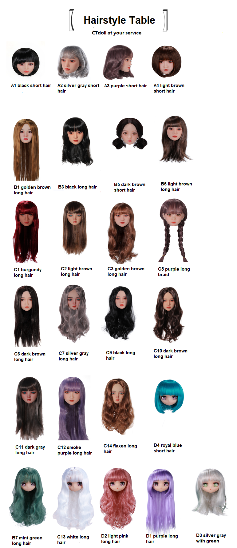 デフォルトのヘアスタイルは、D3シルバーグレーとグリーンです。他のヘアスタイルの要件がある場合は、注文する前にカスタマーサービスにお問い合わせください。または、注文ページに希望のヘアスタイルをメモしてください。